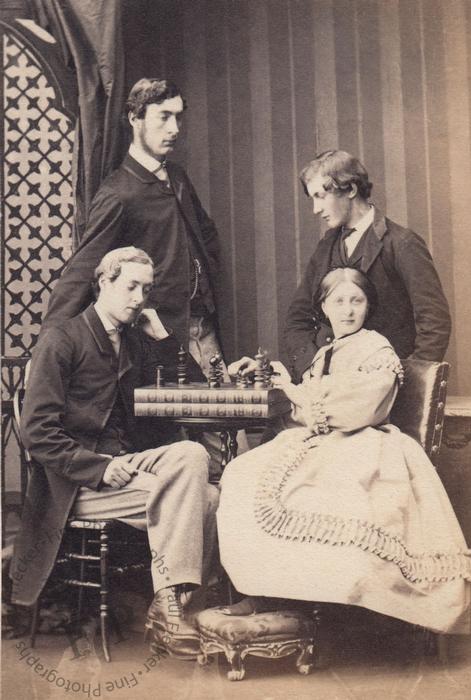 The young man standing at the back on the left is the eldest of the four, Thomas Blackborne Thoroton Hildyard (1843-1928). He married Eleanor Herbert in 1871 at St Peter’s in Pimlico. He died on 19 October 1928 at Flintham Hall in Nottinghamshire, leaving an estate valued at £38,337.